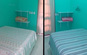 Acomoda 8 pessoas; dois quartos com uma cama de casal e duas de solteiro em cada; churrasqueira individual.